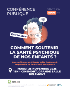 - Conférence publique – Santé psychique des jeunesLa Commune d’Alle relaie la campagne Santé Psy JuraADOS, organisée …
